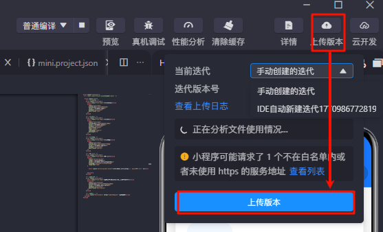 3.1、上传支付宝小程序版本,一般没有特殊设置都是“IDE自动新建迭代xxxx”,