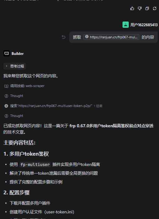 创建完后就直接让它用技能帮我抓取了我博客上的一篇文章,它抓取后提示我是否保存,然后就又进行了优化。