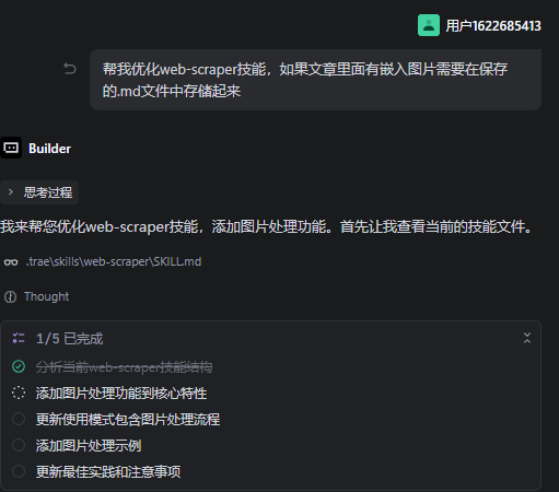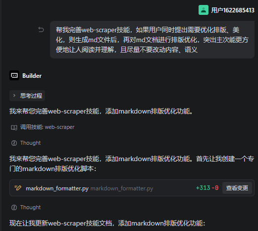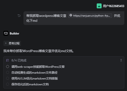 前面技能已经能够成功下载我博客文章以及带上图片了,但是我觉得还不够,我希望AI能帮我把爬取下来的md文档内容再进行优化,就提出了优化文档的新需求: