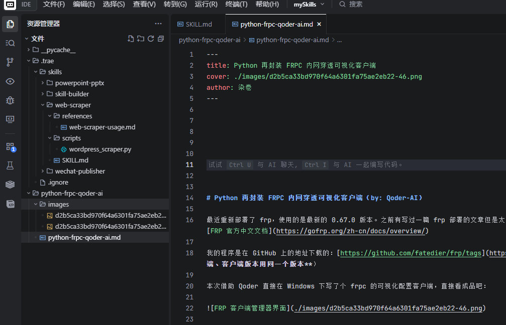 接着让AI帮我把这个python脚本整合到技能中: