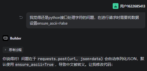 从上图可以看到,他直接在python程序里面去修改了,这不用测试就知道不是我预期的,我希望是让AI的能力来给我进行优化!