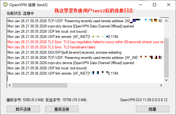 3、客户端导入.ovpn配置并连接