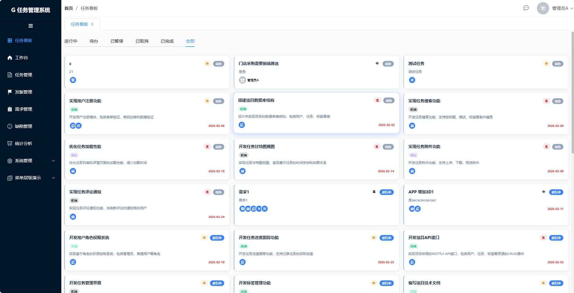 AI 开发的类"禅道"任务管理系统