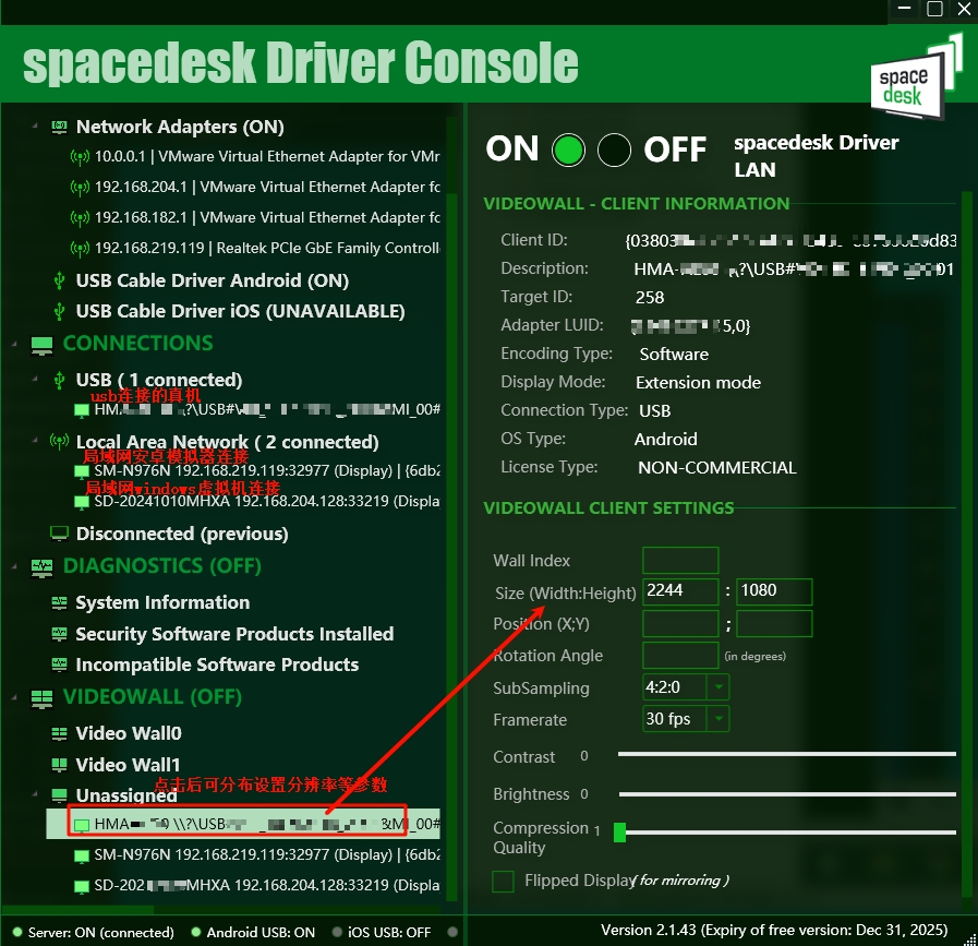 1、软件地址大家网上下载吧,它的windows客户端只要跟 服务端在同一个局域网或可访问网段就可以连接作为副屏使用,安卓端可以通过局域网ip连接电脑,也可以通过usb线连接电脑。